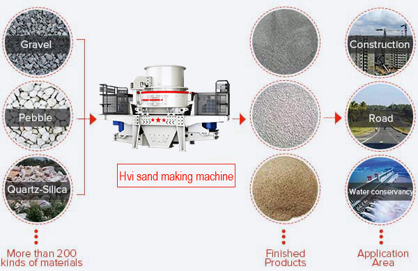 HVI series sand making machines adopts German technology and absorbs the advanced technology of similar products at home and abroad. It is new generation product, integrating various crushing modes into one, becoming the core equipment in mechanism sand industry. It can be widely used in metal and non-metallic ore, building materials, artificial sand and various metallurgical slag crushing and shaping.