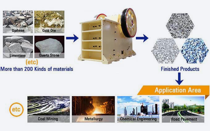 Jaw crusher can crush most of the materials that need to be coarsely broken and crush a variety of materials with compressive strength not exceeding 320 MPA. The unique flywheel design can reduce vibration effectively and make the machine work more stably. The chamber of jaw crusher is deep, so as to increase the feeding capability and capacity.