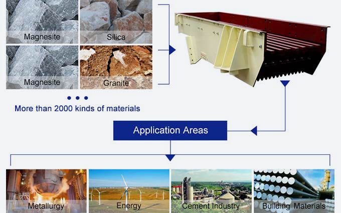 Vibrating feeder is widely used in crushing and screening equipment of metallurgy, coal mine, mineral dressing, building materials, chemical industry, abrasive and so on.