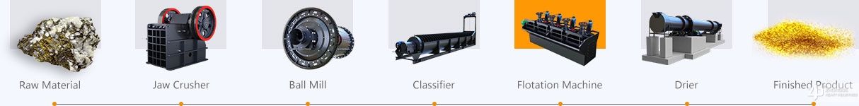 The Main Configuration: Jaw Crusher, Ball Mill, Spiral Classifier, Flotation Machine, Rotary Dryer