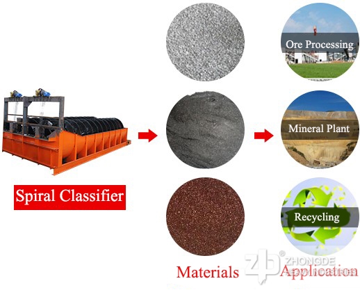 The spiral classifier is a sorting device that combines the ball mill forming a closed cycle in the beneficiation production line . The classifier is suitable for classifying ore and fine mud in the concentrator, classifying different sizes of the slurry in the metal beneficiation process, and deliming and dewatering in the washing operation, for washing, grading and removing impurities in the hydropower and construction industries, and for fine-grained and coarse-grained material separating in other operations.