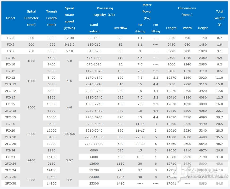 Above models of Zhongde's spiral classifier is available. In addition, for some users with special requirements, Zhongde also supports customized design and manufacture, and the delivery cycle is short, which does not delay the normal operation of the user.